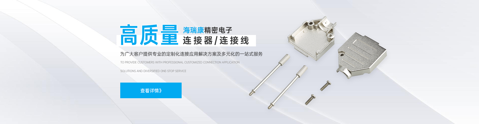 東莞市海瑞康精密電子科技有限公司是一家集產品開發設計、生產、銷售、服務為一體的專業電子連接器、連接線制造廠商.主要從事電腦周邊、網絡通訊各類接插件、機器人、工業自動化、機械儀器、機器視覺、醫藥自動化設備等高精密高規格特種連接器及線纜組合.產品廣泛應用于:工業及電力控制、航天、軍工、電子通訊、安防、LED光電、液晶顯示、變頻器、伺服系統、醫療儀器、汽車電子、電腦主板、電子玩具、各類消費類電子、能源交通等領域.公司致力于為廣大客戶提供專業的定制化連接應用解決方案及多元化的一站式服務......